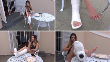 In einem wunderschönen Dessous-Set geht Julia auf den Balkon ihres Schlafzimmers, um eine Modezeitschrift zu lesen und den Apfel zu essen, den sie zuvor zubereitet hat. Ohne vulgär zu sein, legt sie ihre Beine auf den Tisch und nutzt die Gelegenheit, ihren Gipsverband zu bewundern. Dabei präsentiert sie auch ihre frisch lackierten Fußnägel.