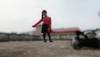 In this video, Lolicc is walking on the rooftop wearing high heels.