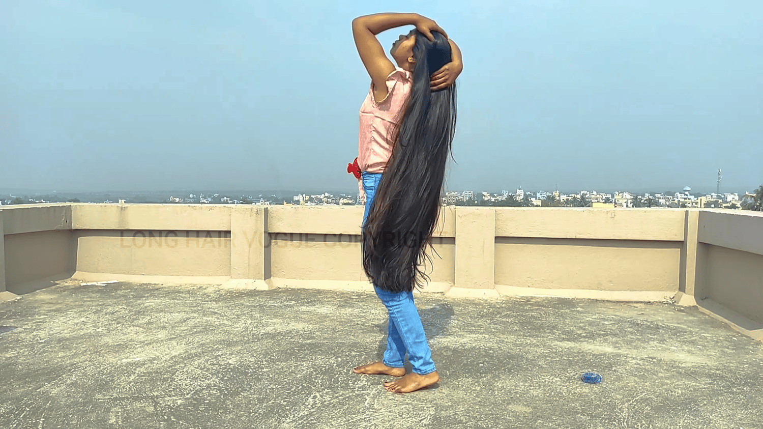 Heavenly Hair Moments | Long, Thick Hair Play & Bun Drop on the Rooftop