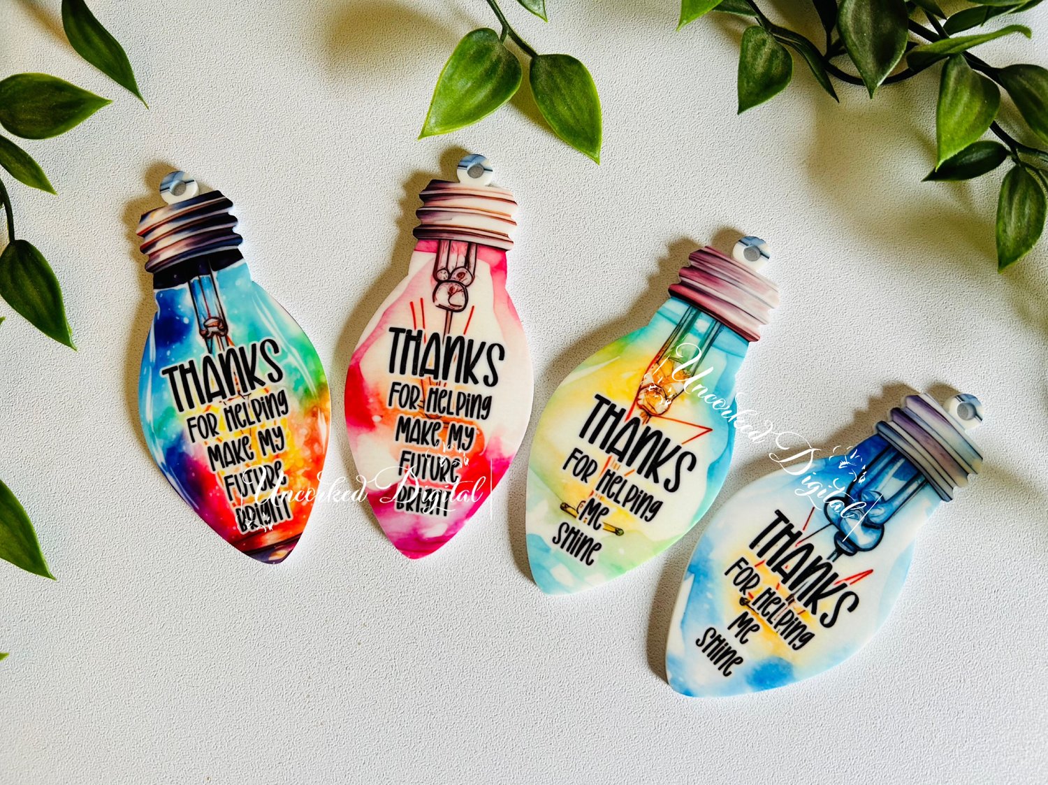 Cute book bag and strip fob keyring designs, perfect for end of term teacher gifts or back to school.