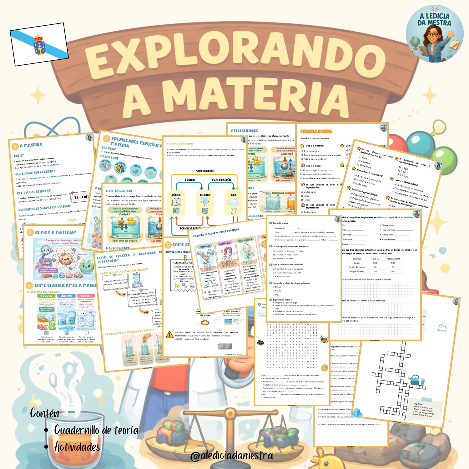 📚 Neste material de Explorando a materia traballamos todo o relacionado coa materia e as súas propiedades. Contén o seguinte: