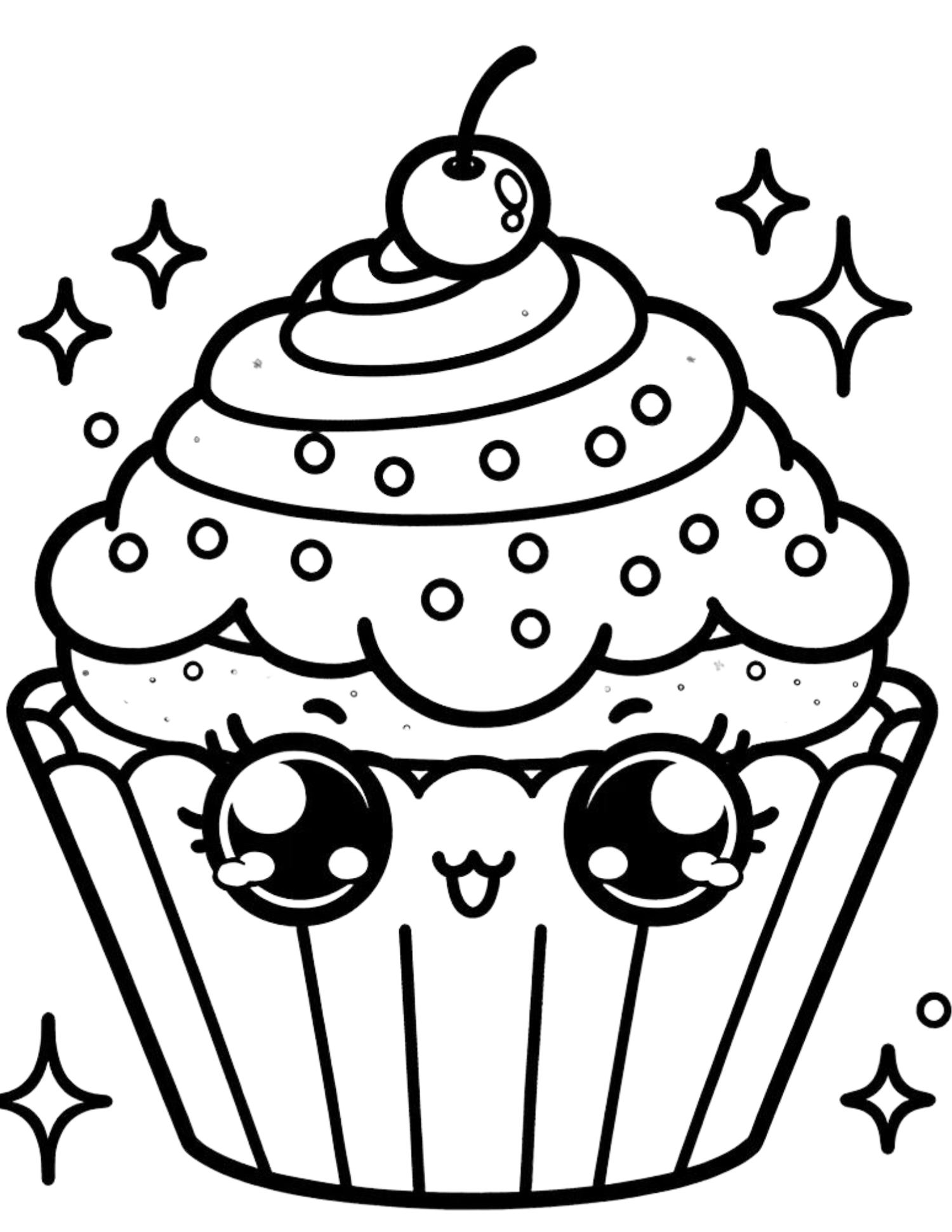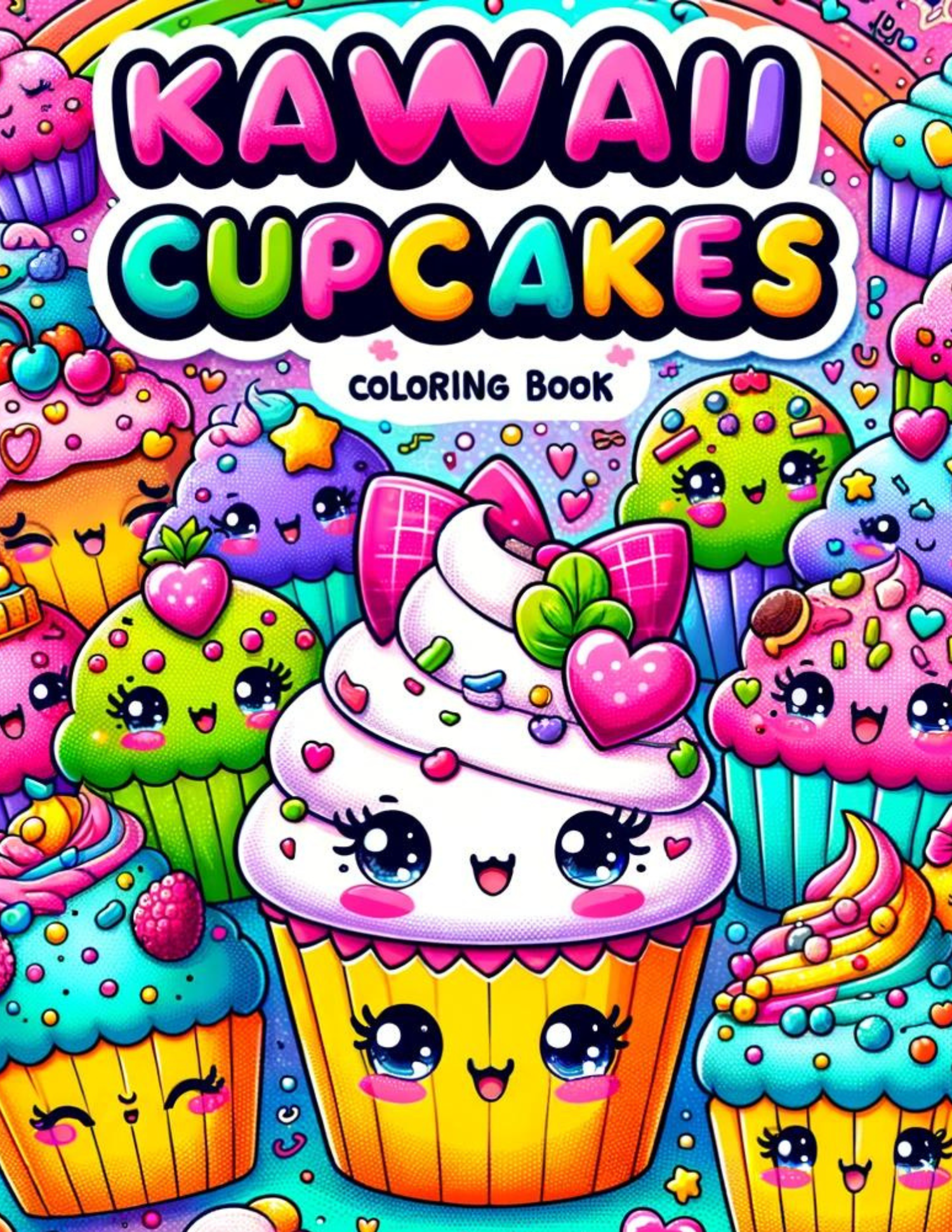 Brighten up your day with this kawaii coloring book that's all about sweet treats! Color sprinkle-covered cupcakes that are sure to spark happy feelings.