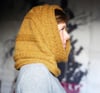 cabled, pleated cowl that unfolds up into a hood as needed