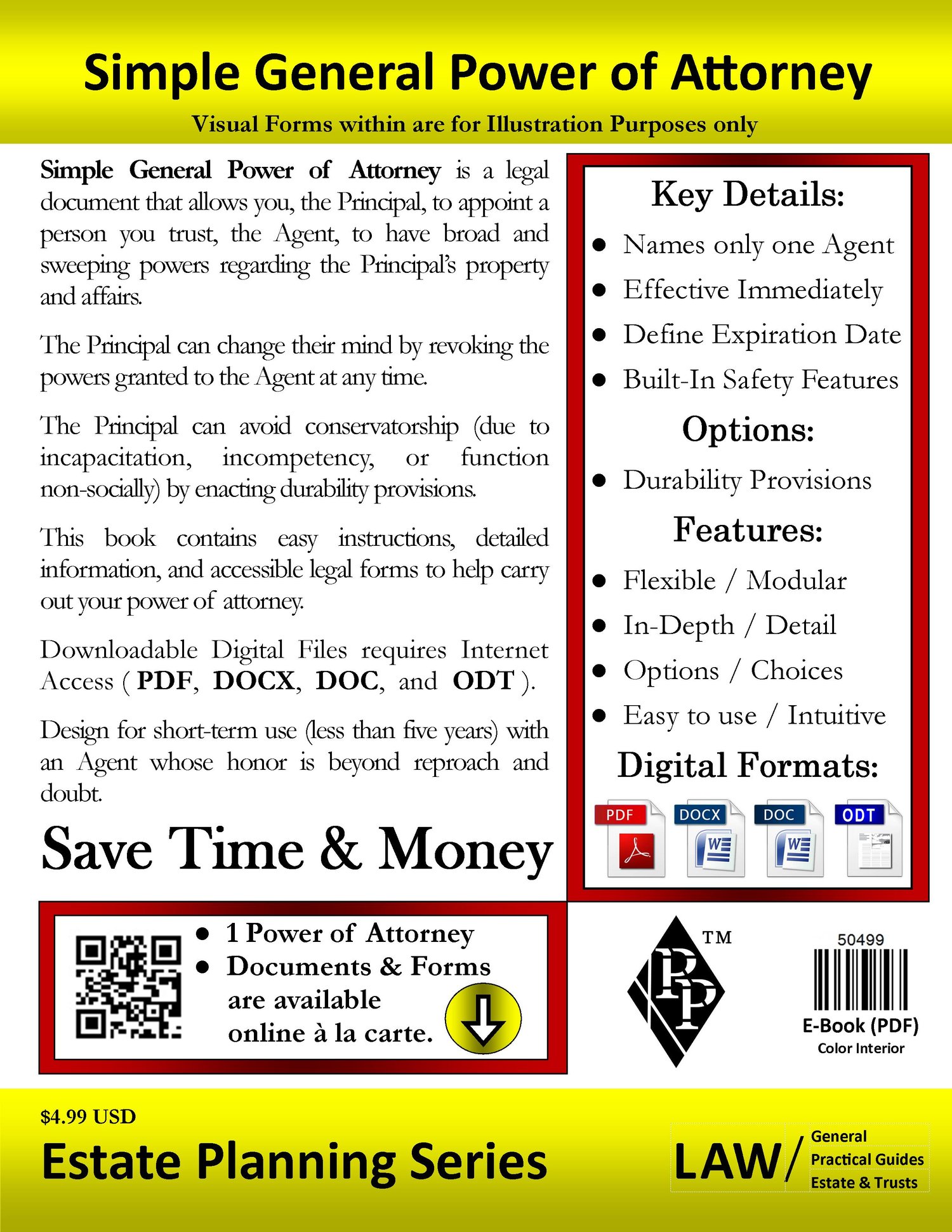 This Power of Attorney has an estate planning focus that provides options, depth, and flexibility while maintaining uniformity with built-in and optional (Durability Provisions) safety features.