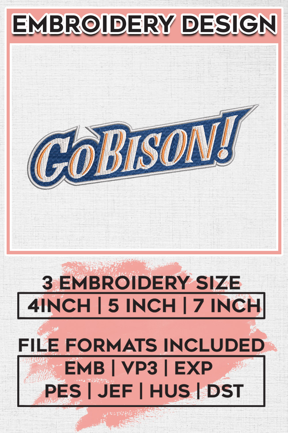 Go Bison NCAA Football Team Logo Embroidery Designs, NCAA Bucknell Bison Machine Embroidery Files, NCAA Logo embroidery designs, NCAA Bison Logo, Digital Download