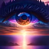 An eye watching the sunset