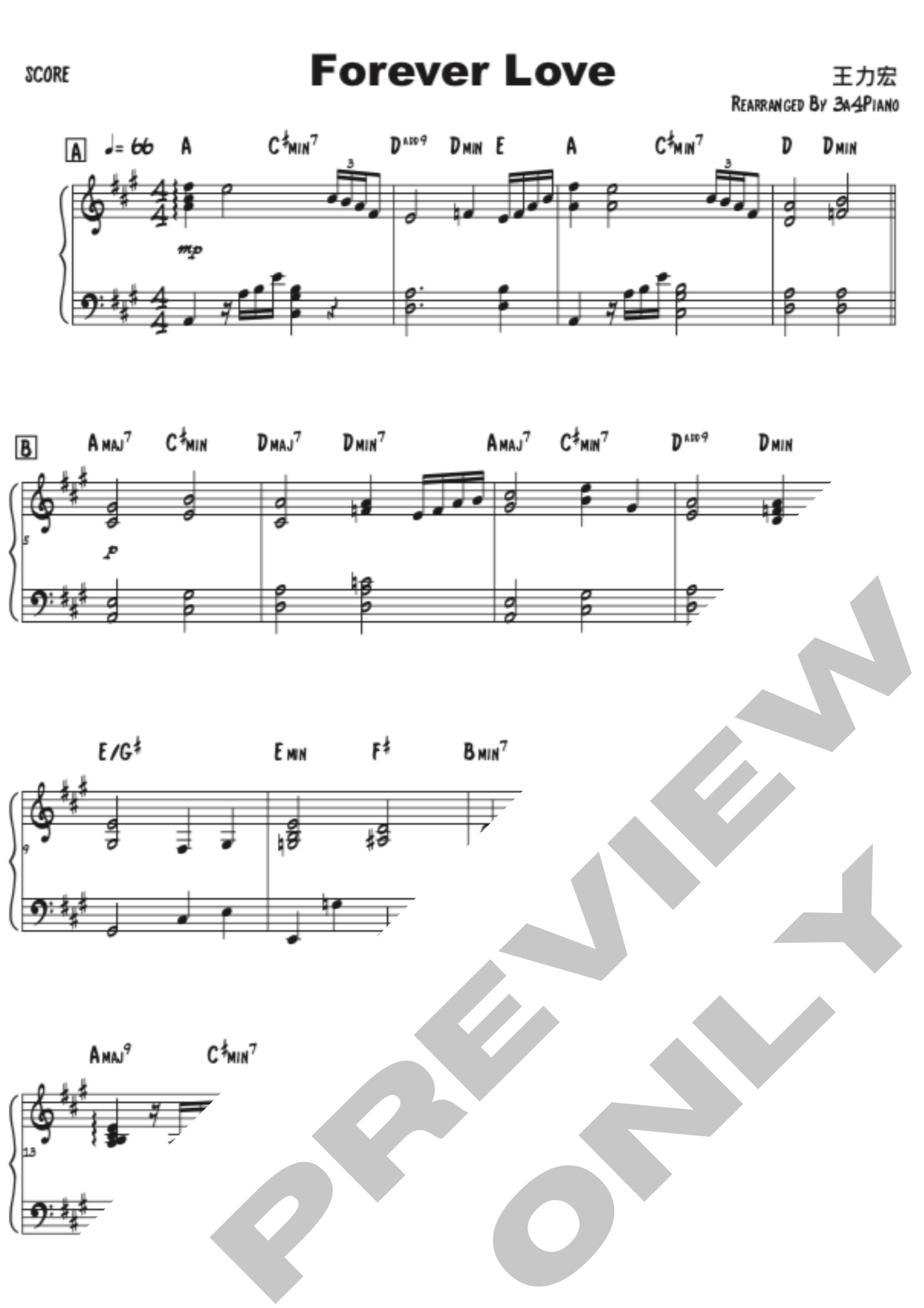 王力宏 - Forever Love (钢琴版伴奏)[3A4Piano]