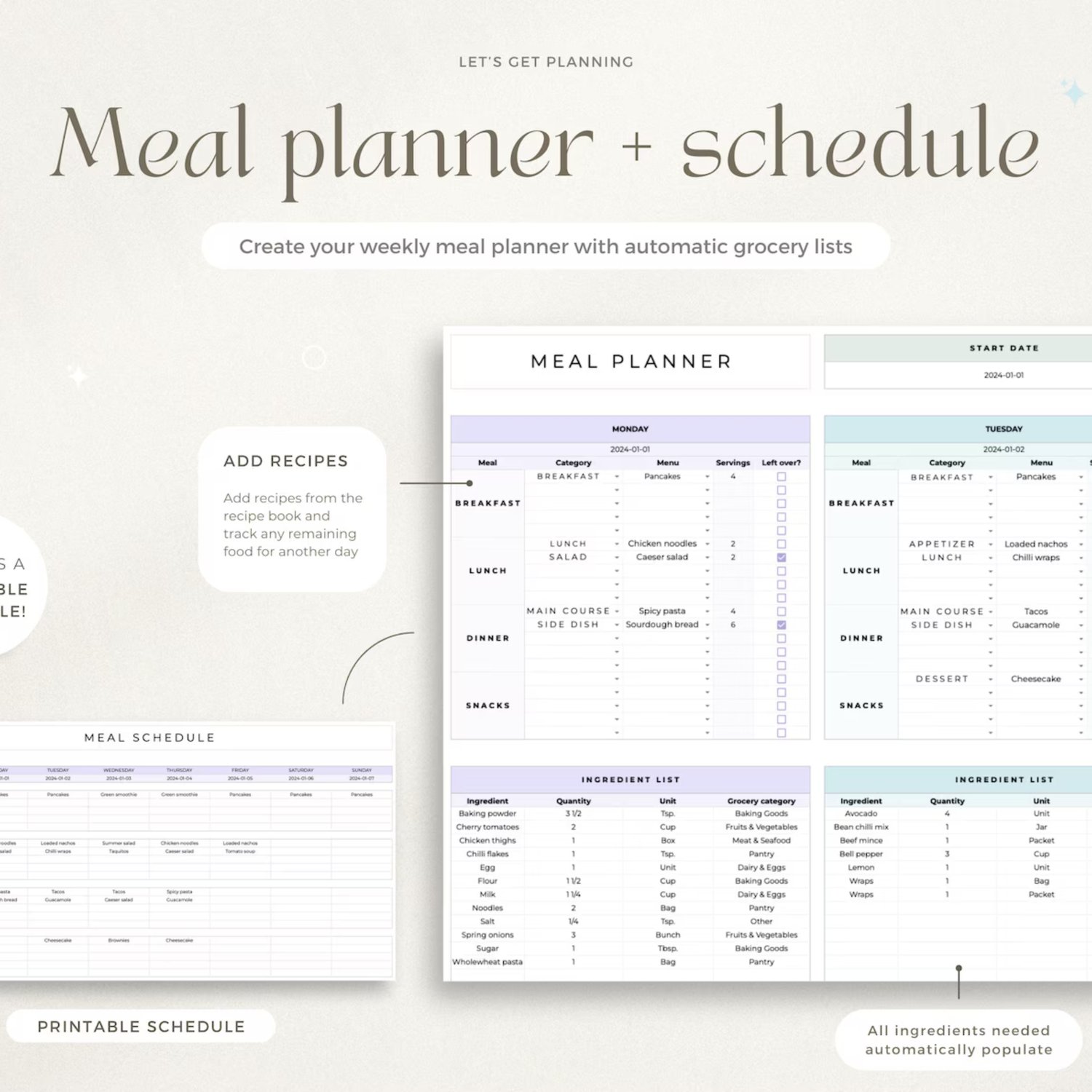 • Printable meal schedule