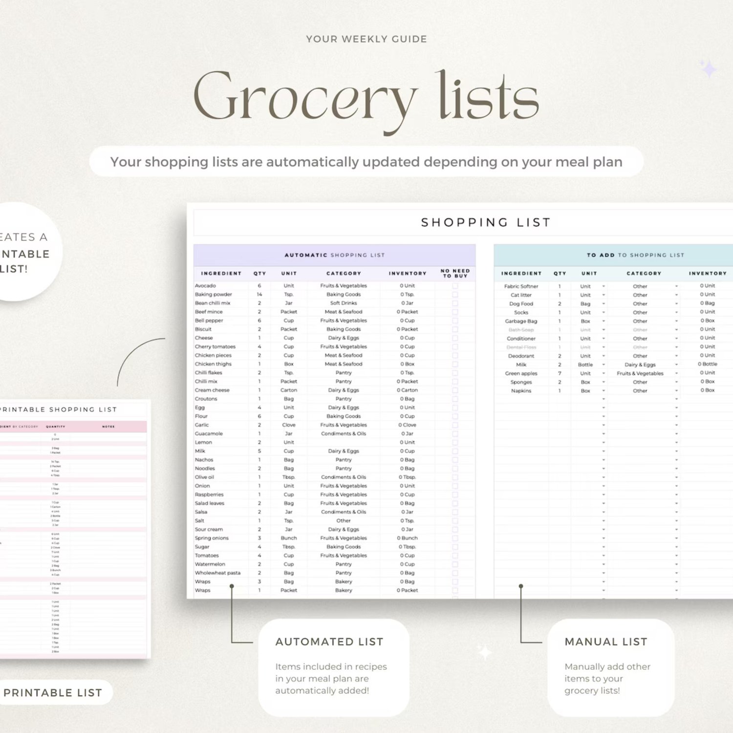 • Printable shopping list