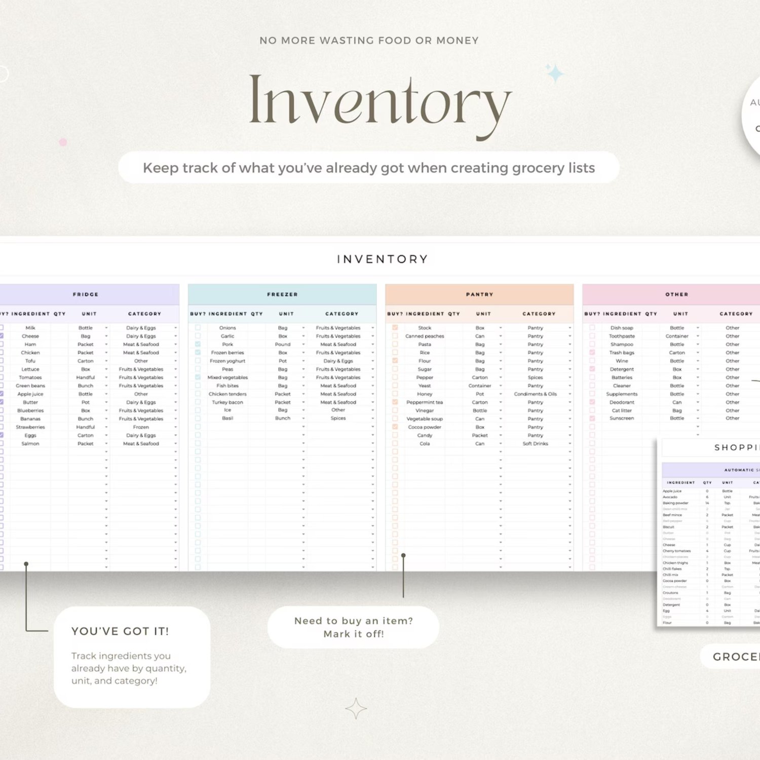 • Automated shopping list