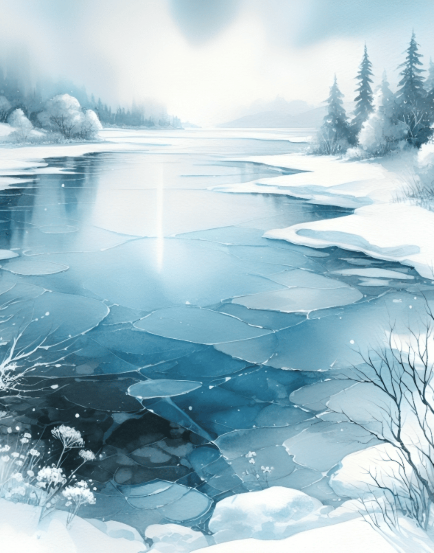 Frozen River, Frozen Landcover, Frozen Lake, Anterctica, Ice Cave, Painting.