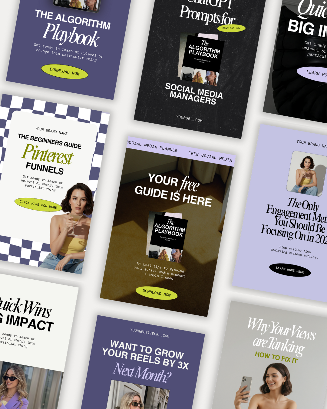 All templates are sized for standard Pinterest pins (1000 x 1500px), making them perfect for driving traffic straight to your blog, opt‑ins, or sales pages without worrying about awkward cropping or sizing issues.