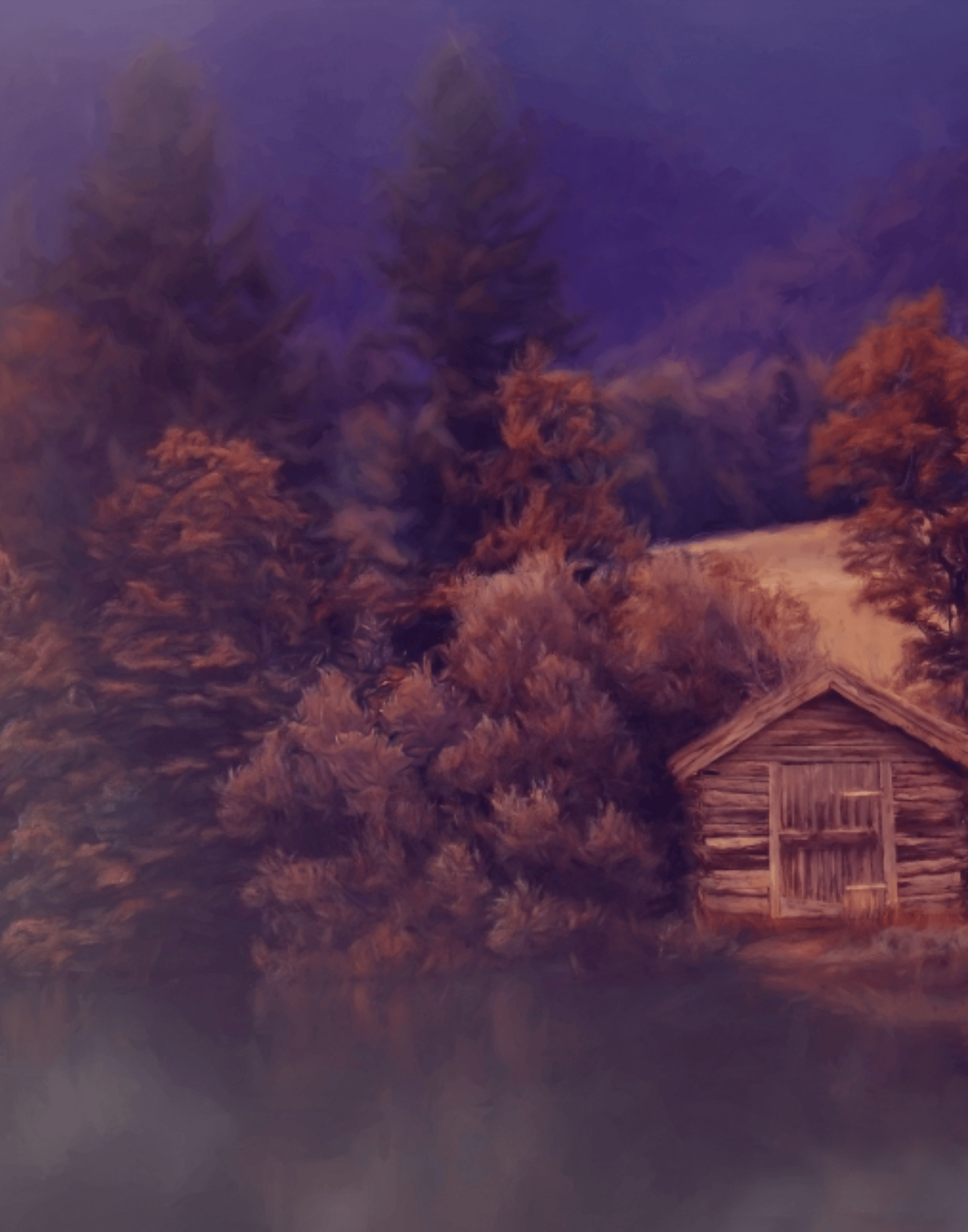 Vintage Village, Vintage House, Forest House, Vacation House, Top Art, Nostalgic Rural life, Nature, Cool Nature, Beautiful Nature, Sunrise, Natural Landscape, Wall Art, Digital Art.
