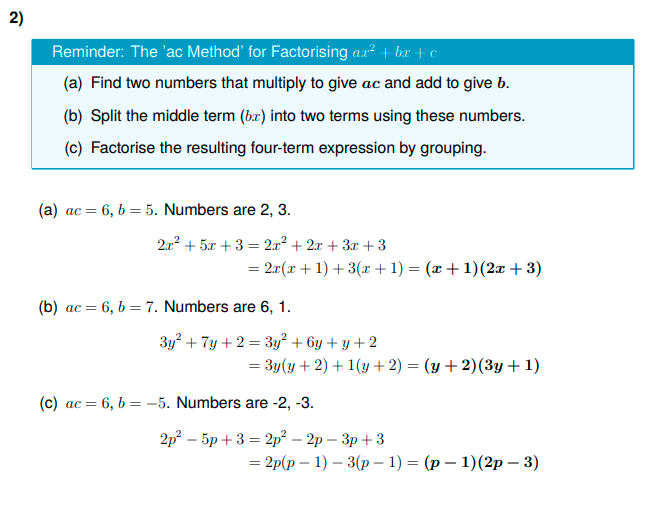 IGCSE Higher Maths: Factorising 2 (Worksheet & Model Answers)