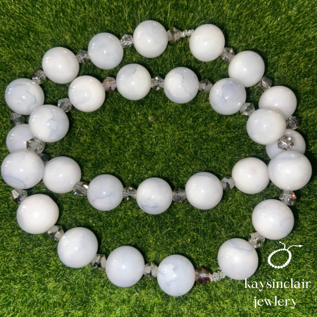 lovely white bead bracelet with shinny accessories