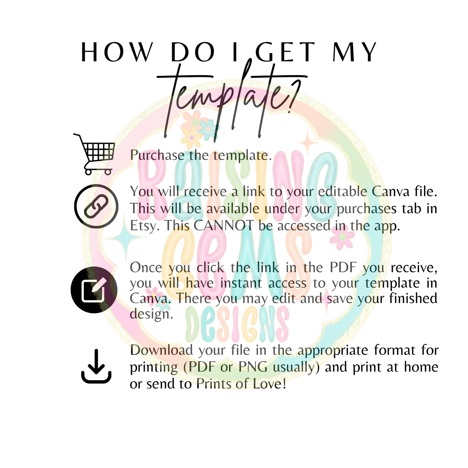 PLEASE NOTE: You will need a Canva account but the free version is sufficient for our designs. You can edit on your PC, tablet, or phone. Once edited and downloaded, this design can be printed at home, through a local printer, or online print company.