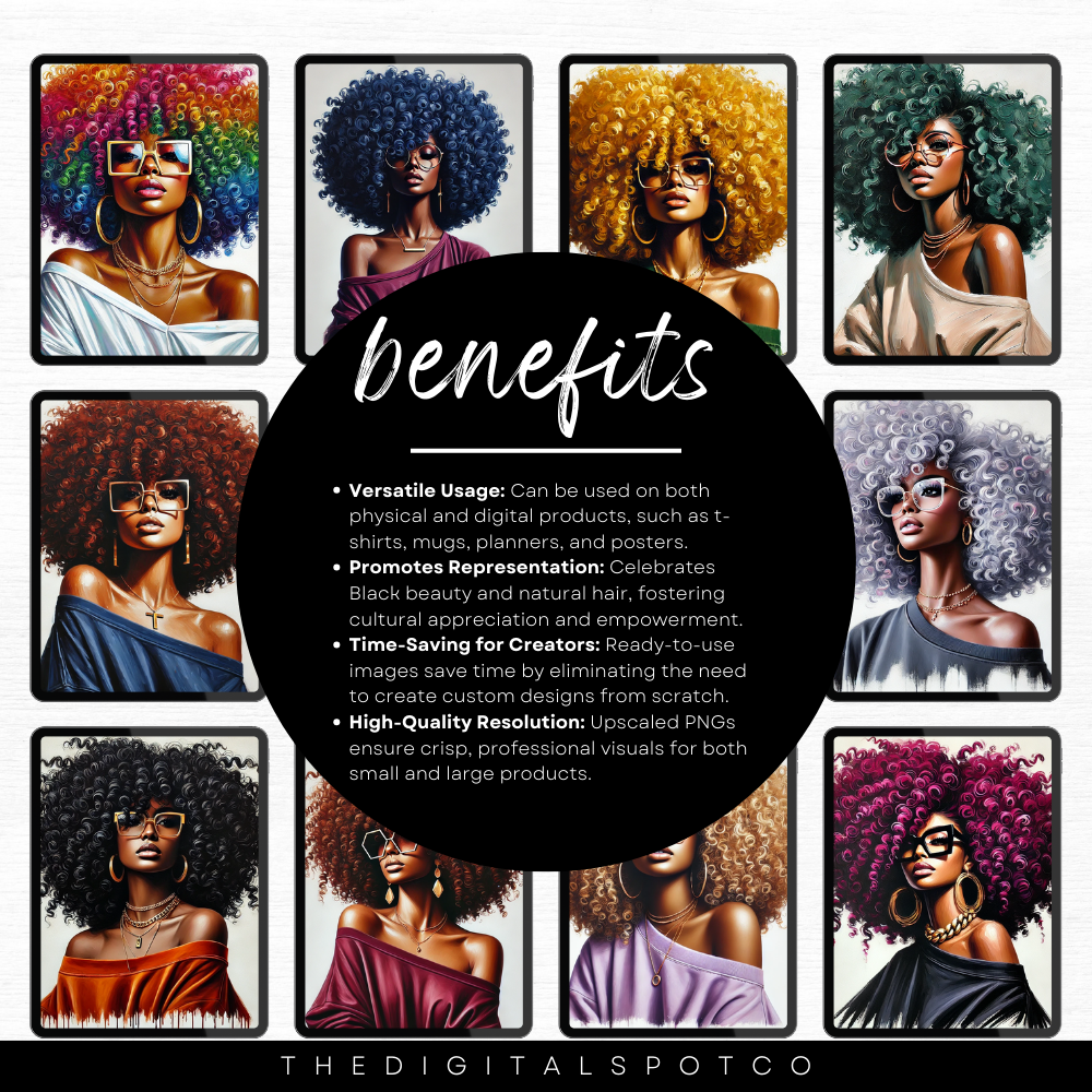 Cute Afro Girl PNG, Curly Afro, Afro Woman Painting PNG, Ai-Generated Girl, Ai Art Bundle, 38 High-Resolution, Unique Upscaled Artwork
