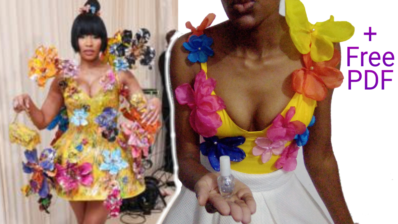This is the Bustier Lace-up Crop Top Pattern I made to diy a top inspired by Nicki Minaj's yellow 2024 Met Gala Dress by Marni. It has 3D flower structures so I made 3D Fabric flowers for my sewing pattern too!
