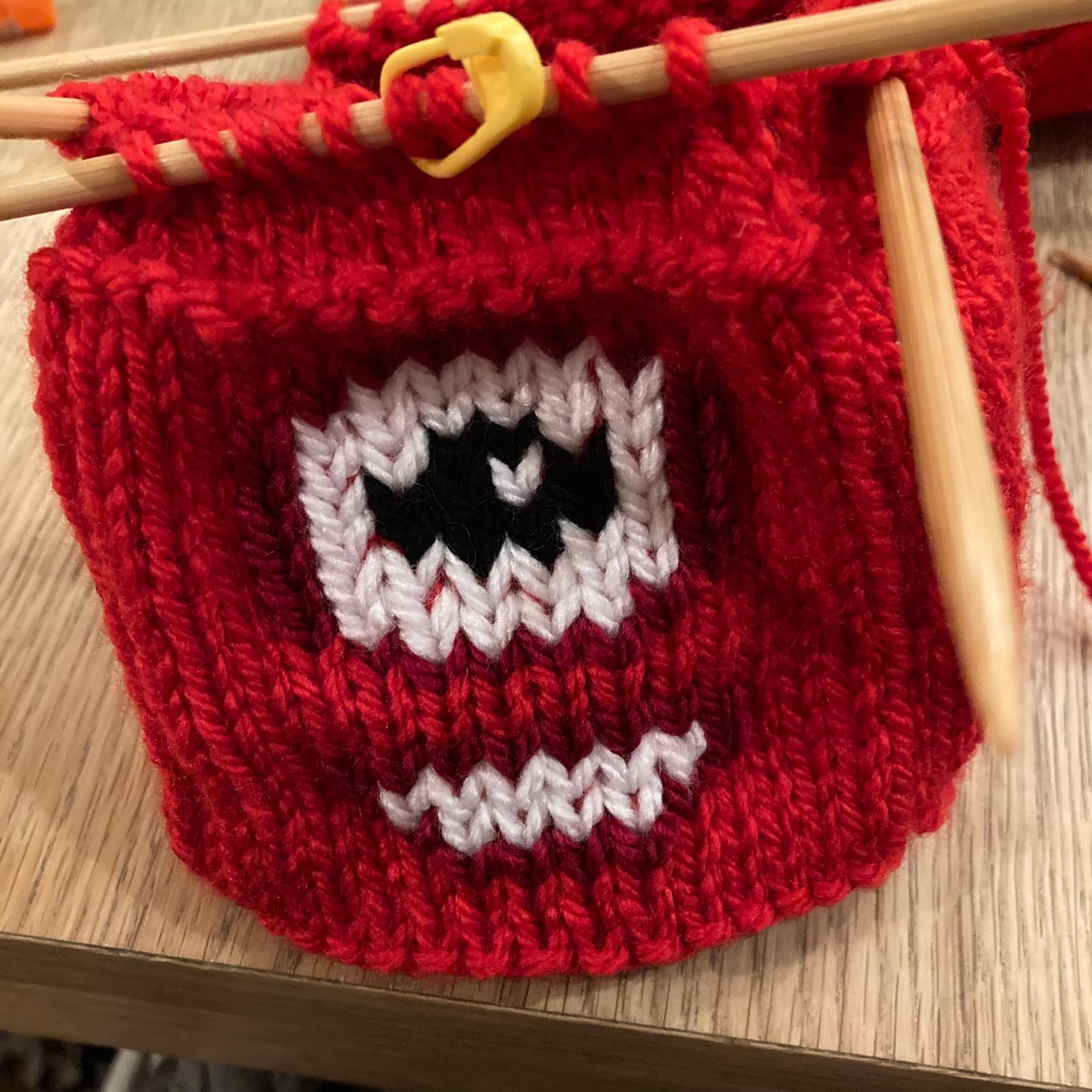 This cuddly One is knit in the round on 4.25/4.5 mm dpns using Aran weight yarn (although gauge isn't important so you can substitute for a lighter weight yarn if you don't want your Numberblocks to be too big...). The body is worked in one piece, with the face duplicate stitched on before starting the decrease rounds (chart provided). The arms/legs are knit separately and attached at the end. Mine used up less than 40g of bright red, and small, scrap amounts of dark red, black and white for the arms, legs and face. You'll also need stuffing and a tapestry needle, and stitch markers are always useful to keep track of stitches (although not essential). Skills required: