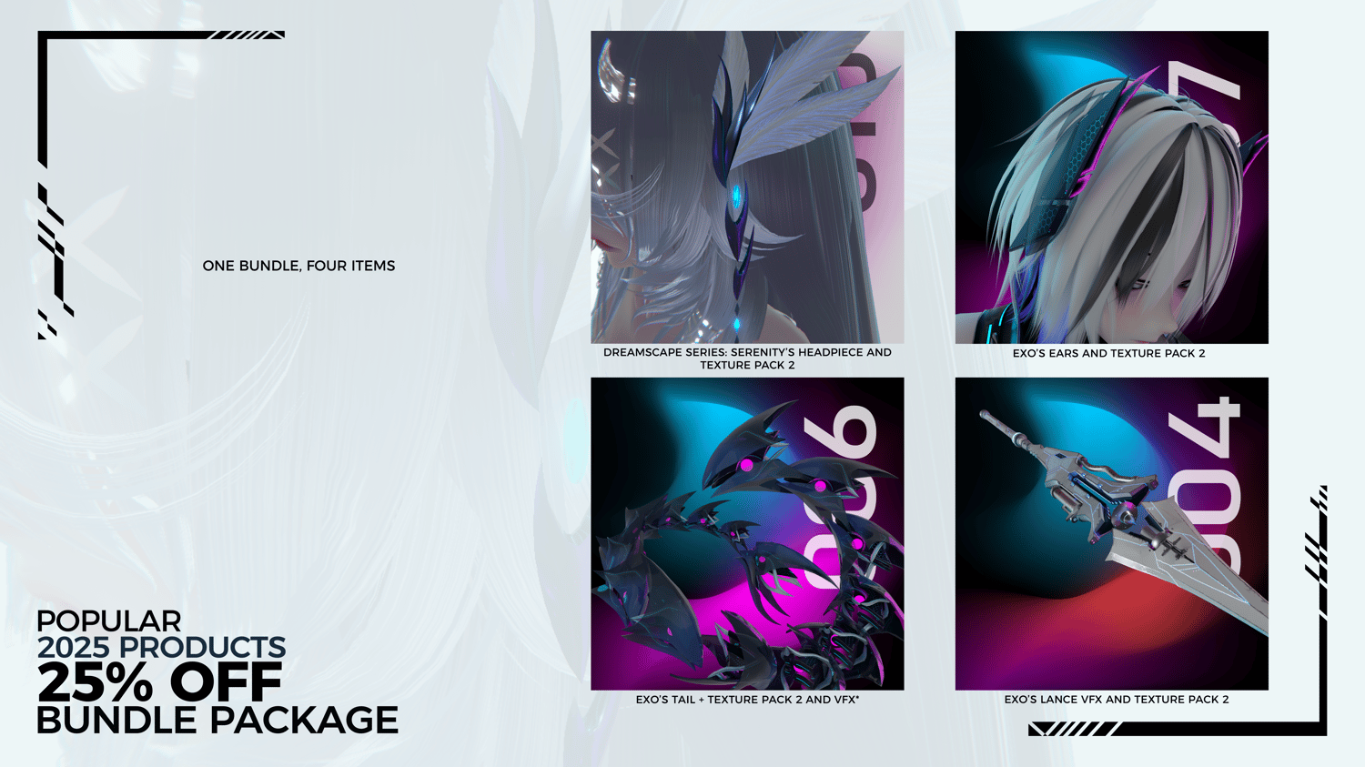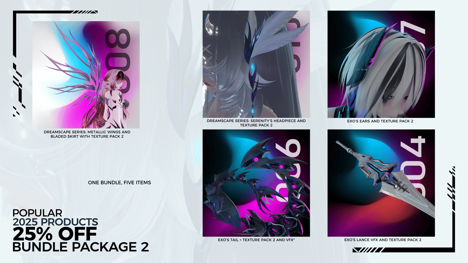 Note: This package above includes the bundled items above. For the bundle with Dreamscape Outfit [Metallic Wings & Bladed Skirt] - Payhip please purchase "Bundle Package 2".