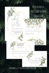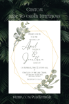 One of 2023's hottest wedding invitation designs, our Eucalyptus Wedding stationary gives you more style for less money! Eucalyptus fronds and golden geometric accents, and lovely eucalyptus green, modern fonts, this set comes with: