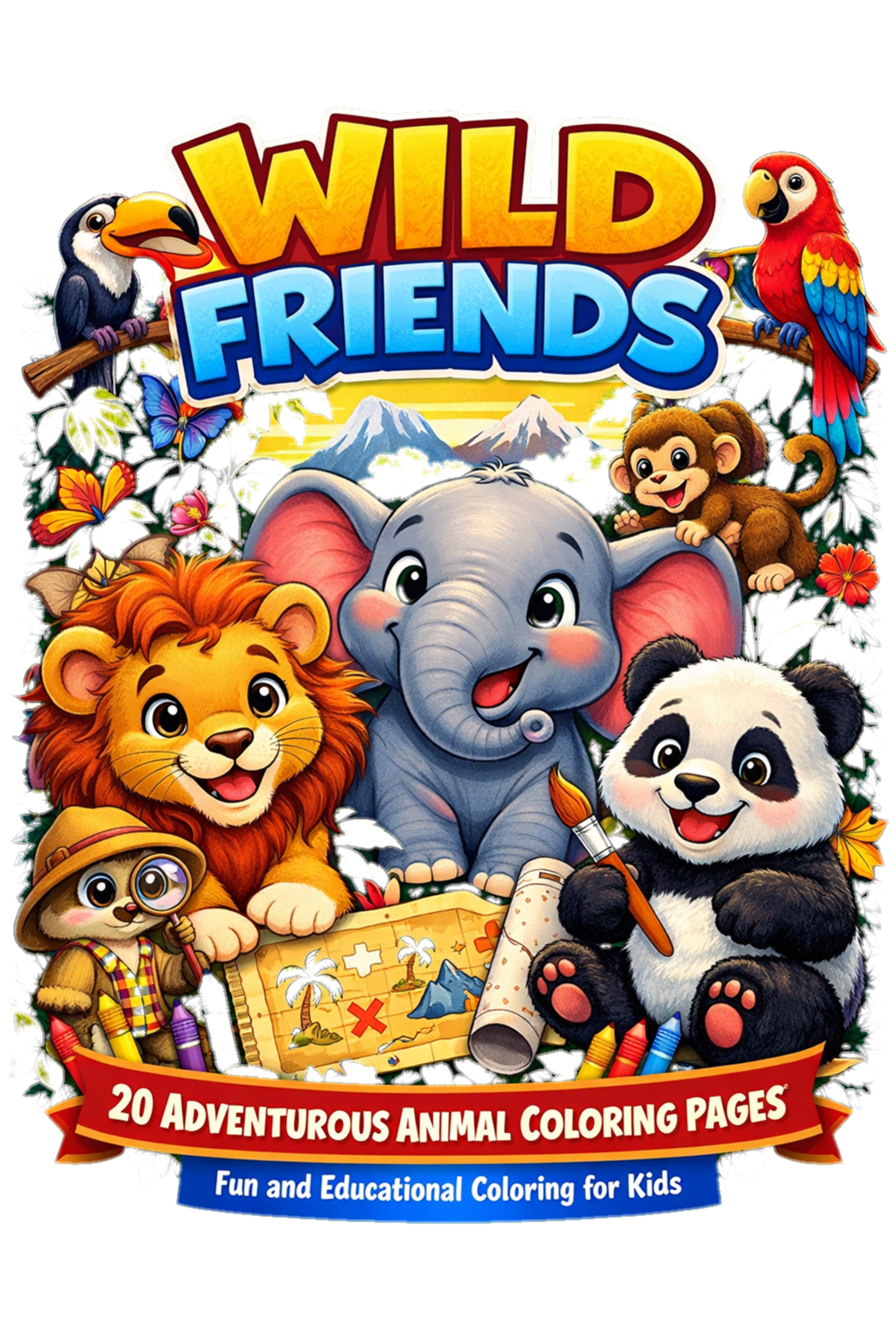 Wild Friends: 20 Adventurous Animal Coloring Pages - Fun & Educational Kids Activity Book