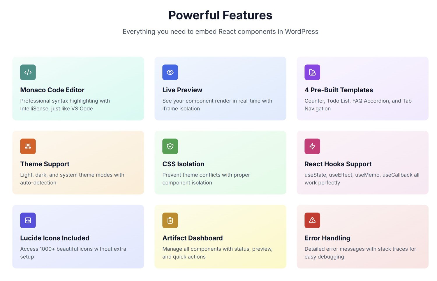 Embed React components anywhere in WordPress—no complex setup required