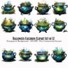 Halloween Cauldron Cartoon Set of 12 Clipart PNG"s