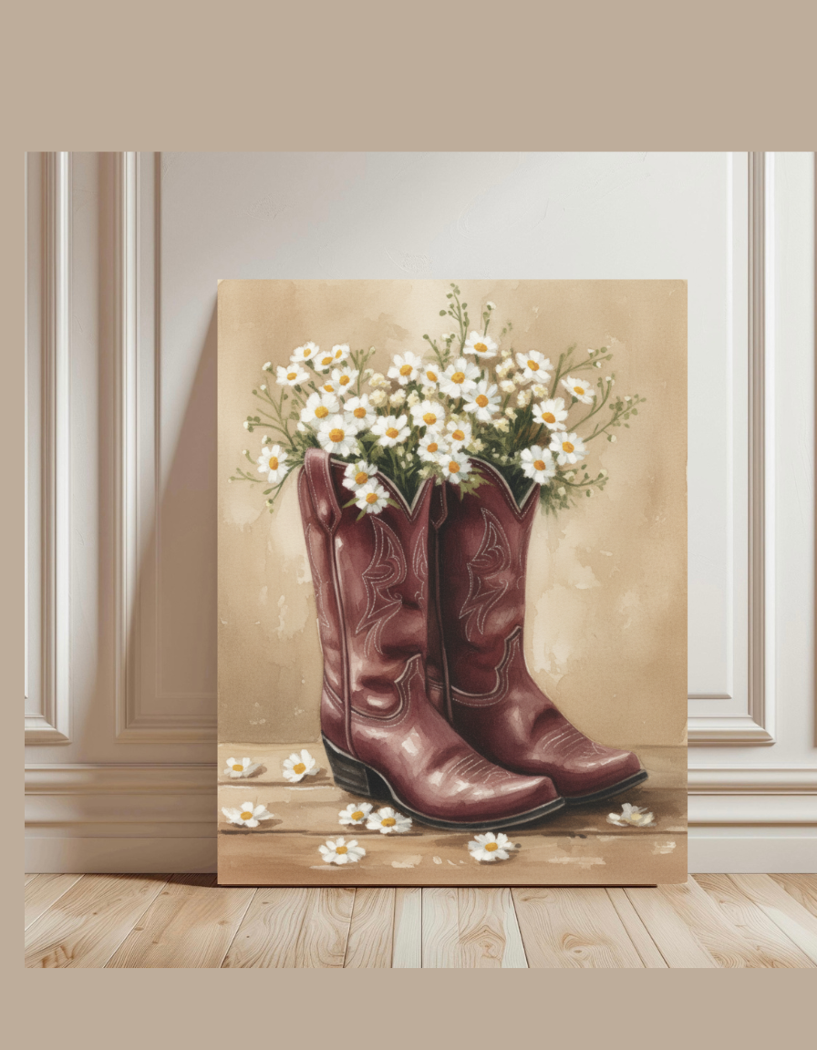 Instantly downloadable as a PNG file, this digital print is ideal for creating stunning wall art prints, posters, or custom frames in your living room, bedroom, or dorm. Whether you're embracing a neutral western wall art vibe or adding floral prints to your coastal decor, this vintage-inspired watercolor boots artwork brings nature-themed serenity and boho fashion digital prints to any space.