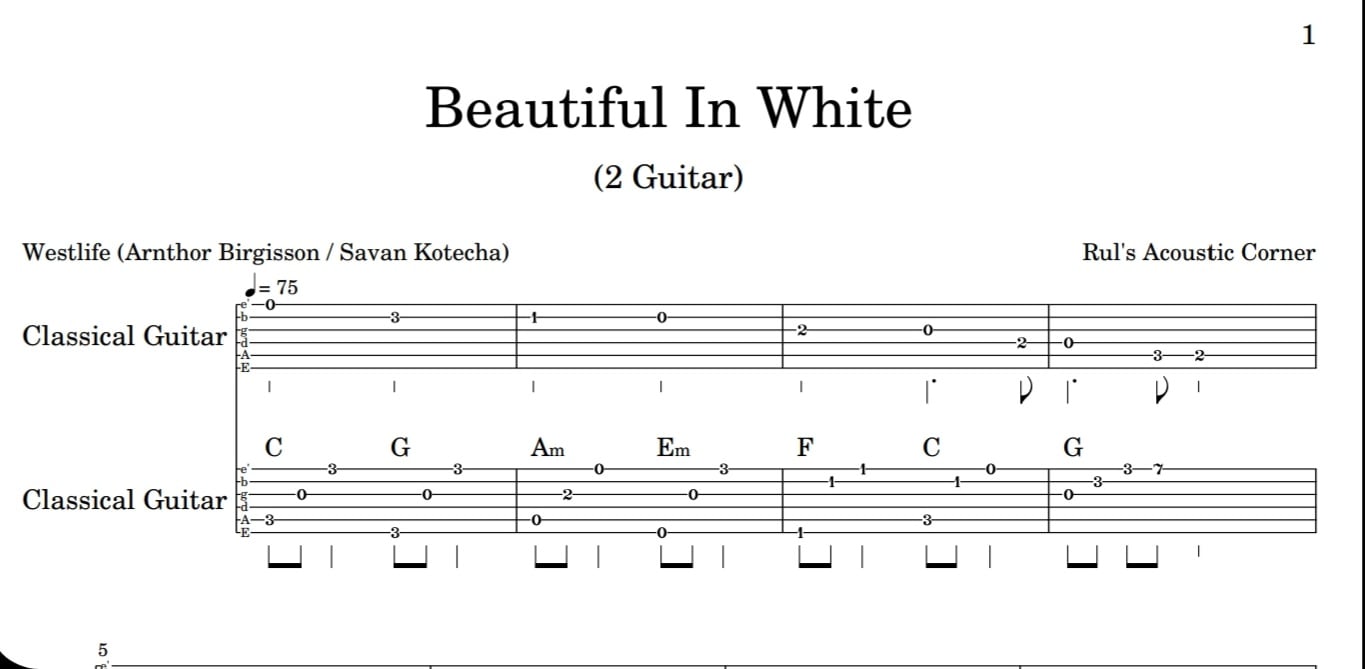 Sampel Lesson Instrumental Westlife - Beautiful In White 2 Guitar Musical Notes Tabs High Quality PDF Video Tutorial Download