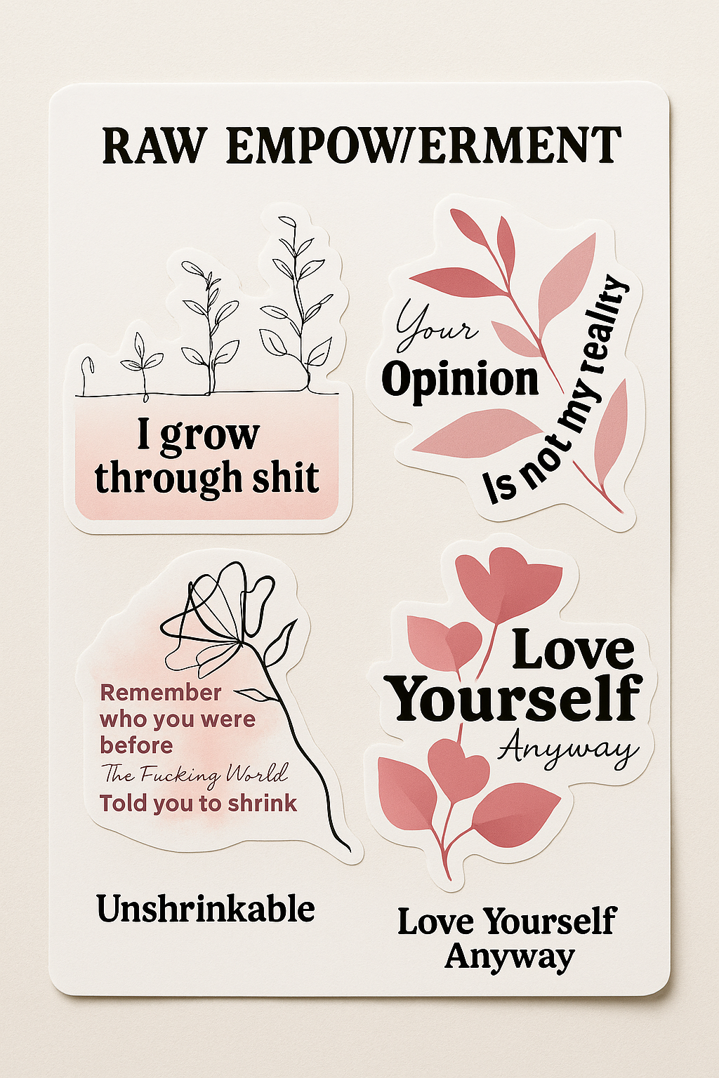 Designed with soft blush botanicals and modern curved typography, this piece speaks to boundaries, self-worth, and choosing your own perception in a world full of noise. It encourages emotional resilience, grounded confidence, and the power of owning your narrative.