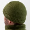 A knitting pattern to create a cap and a cowl, both knit in the round.