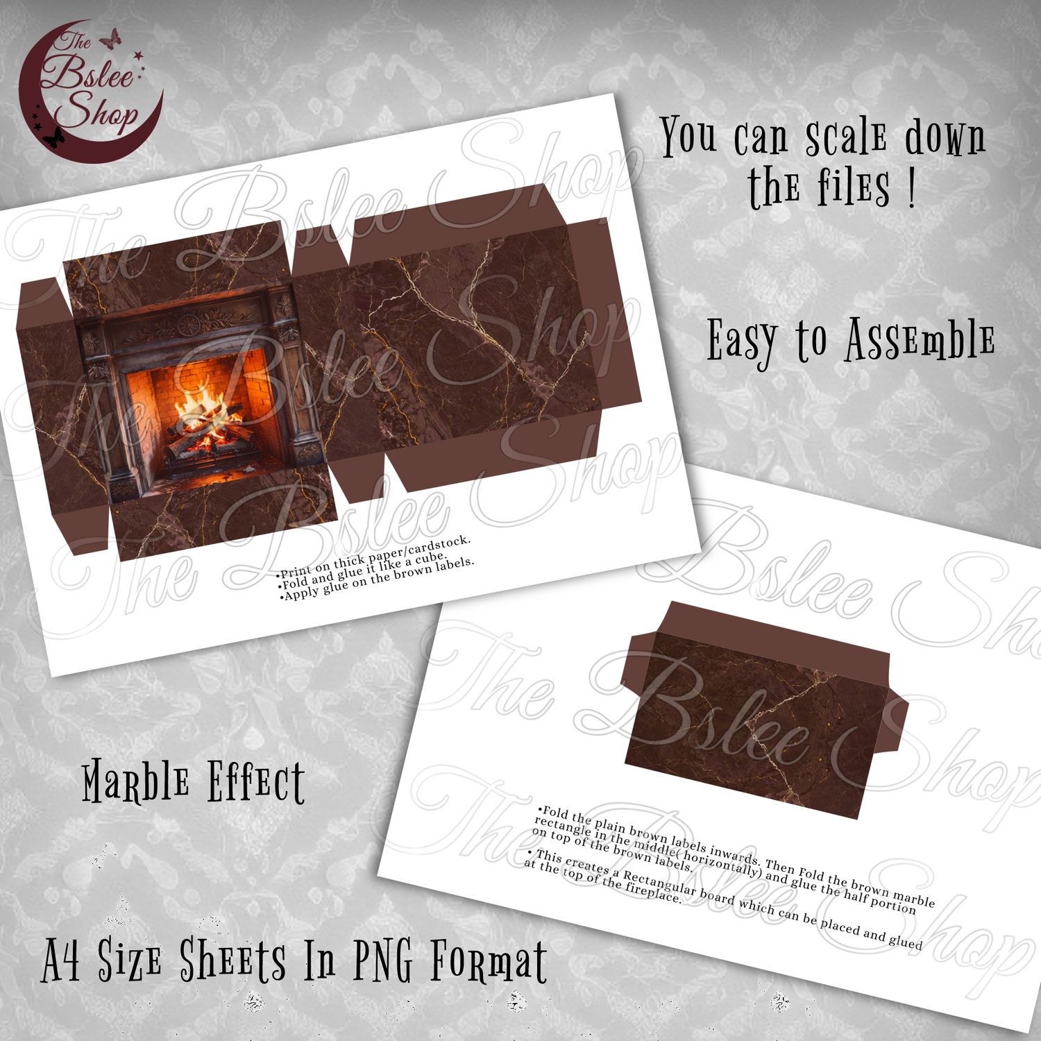 This is a printable DIY Fireplace for your Dollhouse! A realistic look with a marble effect. You will get a Fireplace and a Marble Top Board slightly wider to place over the piece ( optional ). You can scale down the files if you require a smaller size for your project. This fireplace is really easy to assemble. I recommend printing on thick paper/cardstock. Save time by instantly downloading and printing the item, there is no shipping cost.