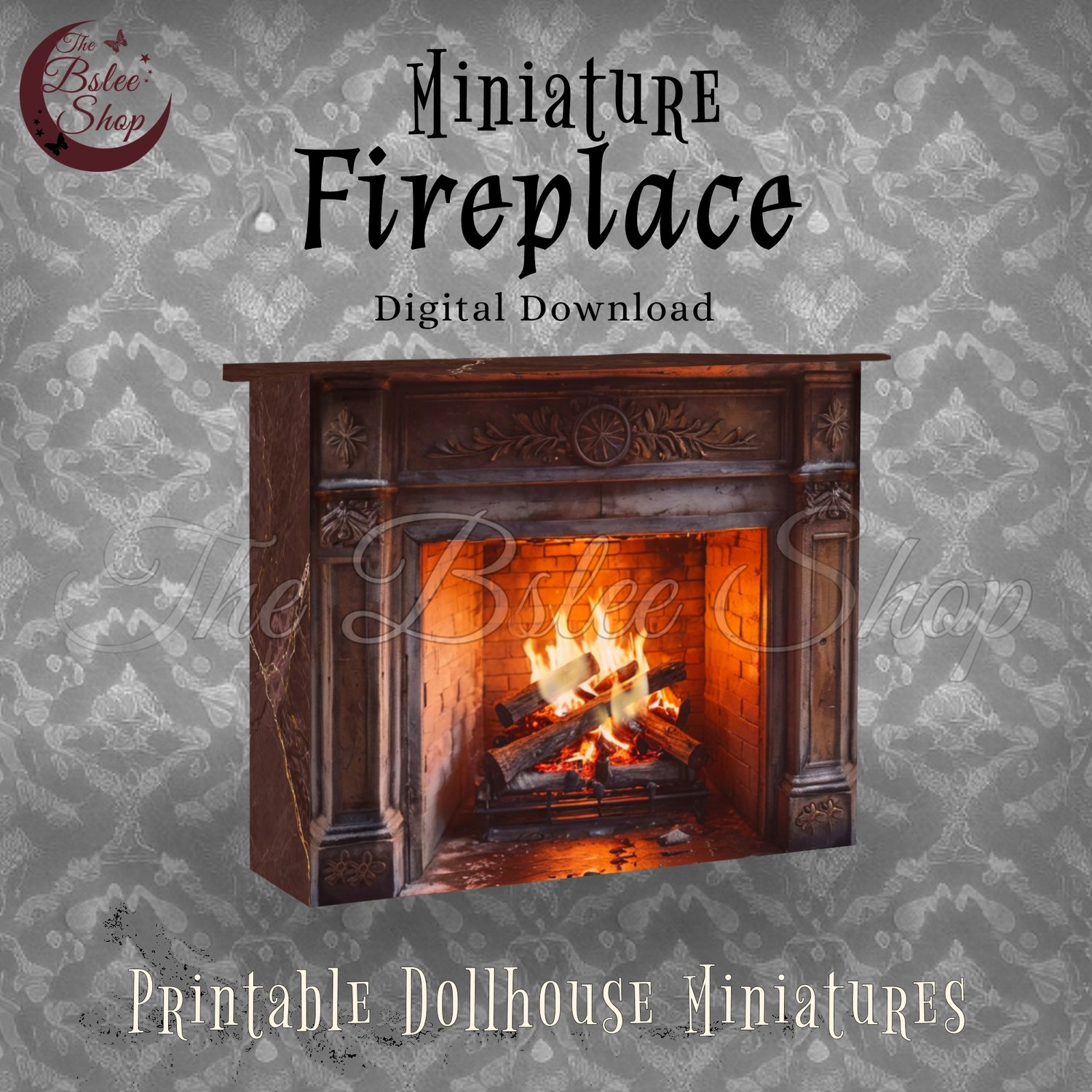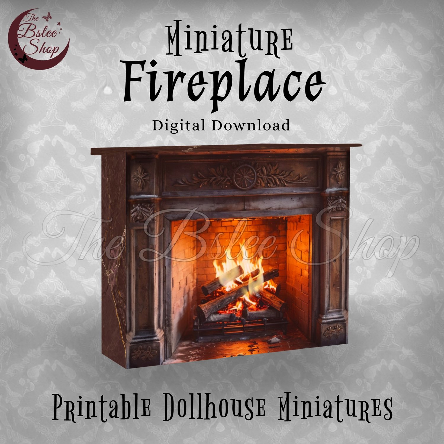 Realistic Miniature Fireplace, Dollhouse Furniture, Printable Mantelpiece, Victorian Dollhouse, Vintage Mini Furniture