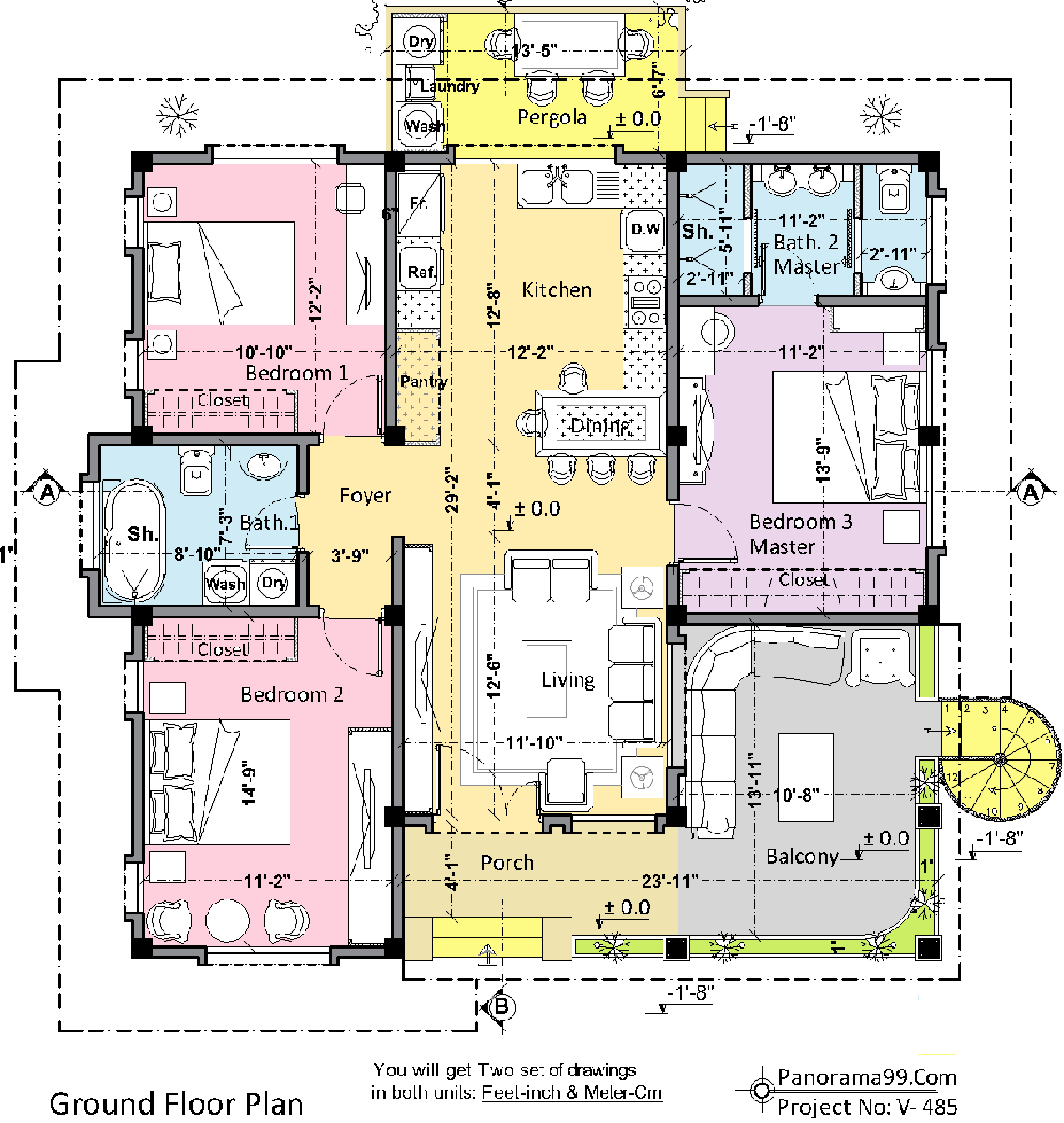 2- You will get Two Sets of detailed drawings as digital PDF files, in both units Feet and Meter.