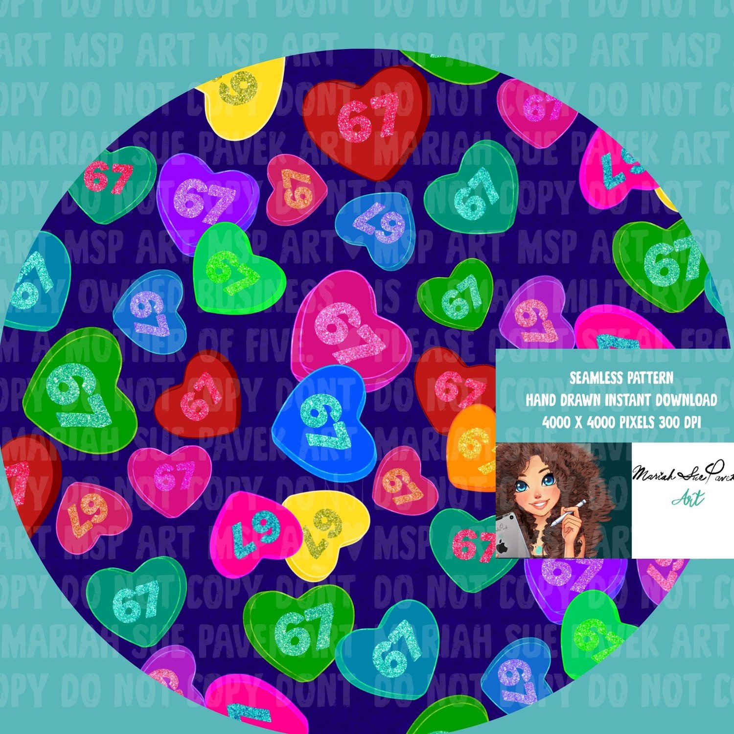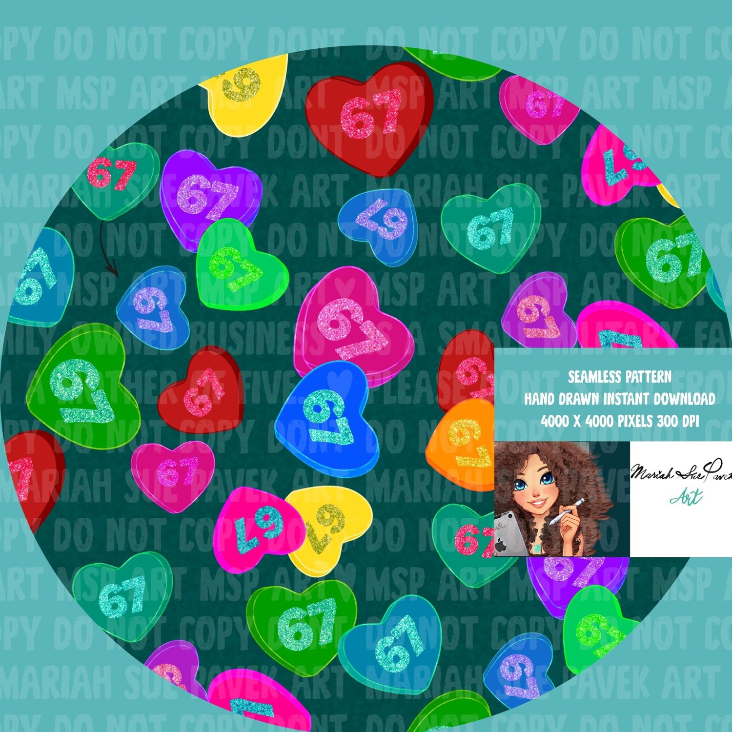 67 Candy Hearts Bundle - Seamless Patterns & PNGS