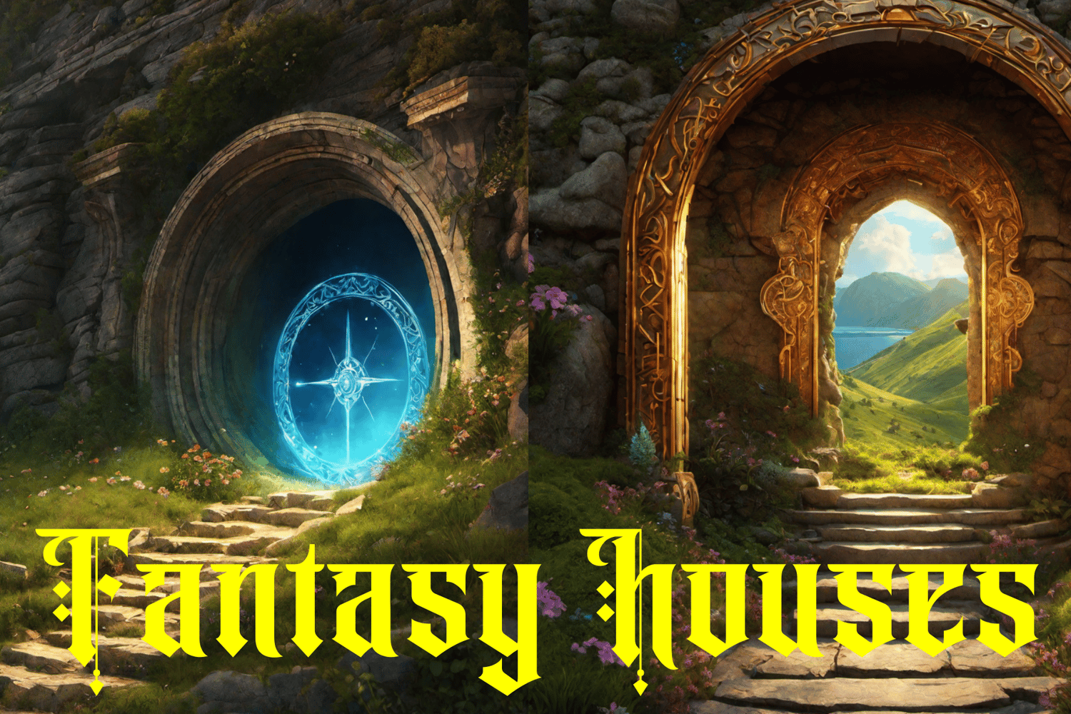 A pack with 28 fantasy houses and landscapes with houses and fantasy cottages