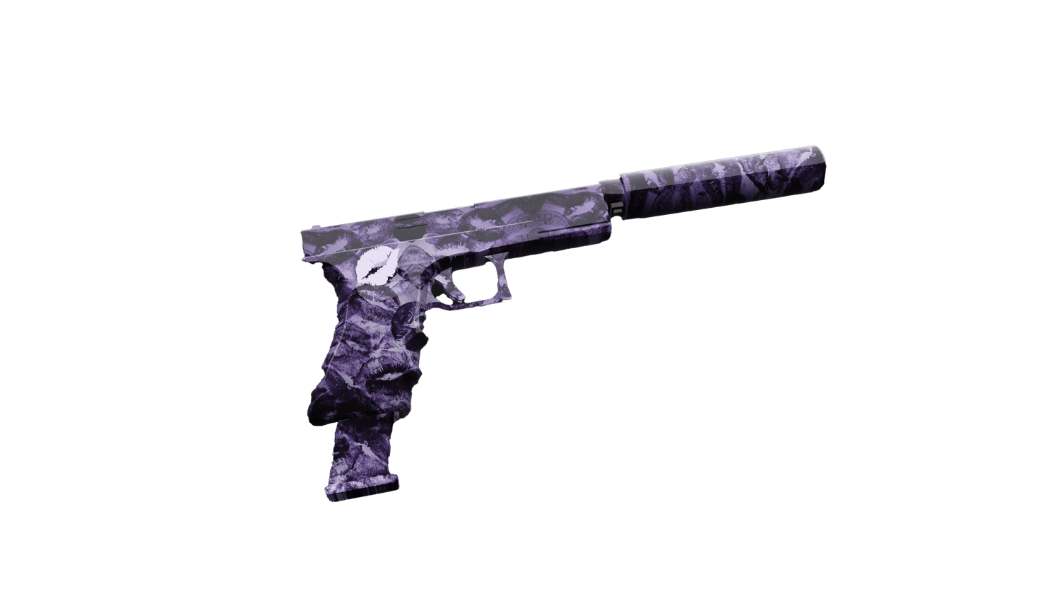 Liplocked is a sleek, seductive weapon that blurs the line between beauty and danger. Wrapped in deep purple tones and marked with bold lipstick prints, it carries the essence of a secret kiss with deadly consequences. Every shot fired feels like a signature sealed with lips—silent, intimate, and lethal. Perfect for those who want their weapon to make a statement both in style and intent. Each kiss is Lethal