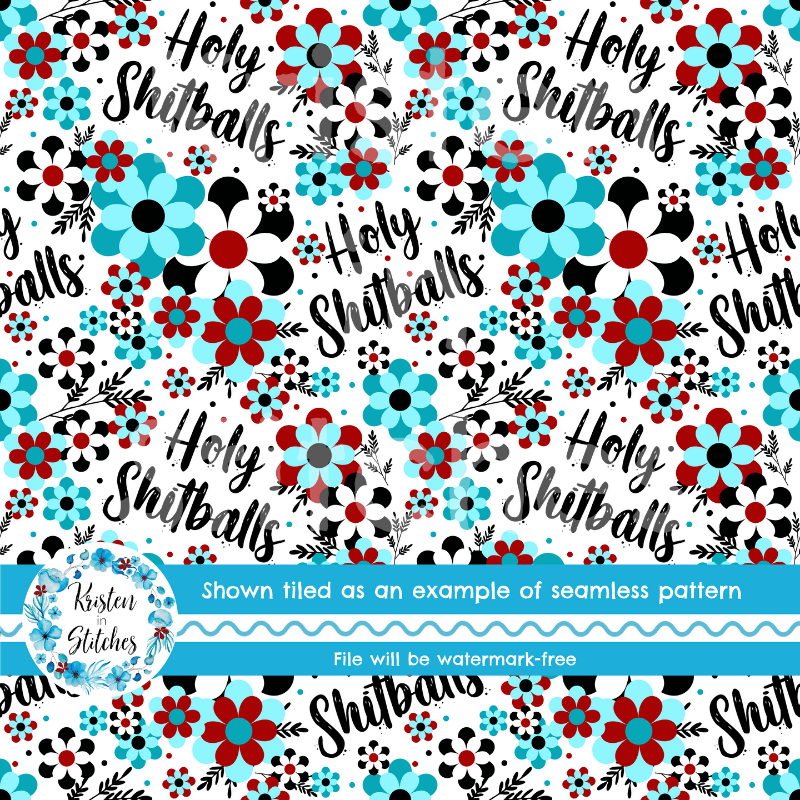 Holy Shitballs Sweary Floral Seamless Pattern, Pretty Profanities