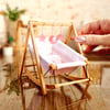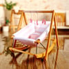 This set includes a miniature baby bouncer and a miniature activity arch with hanging toys.
