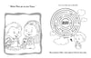 Vous y trouverez plein d’activités amusantes pour les enfants, comme des pages à colorier, des dessins faits de points à relier, labyrinthes, quiz de lettres, pages de griffonnage, applications pratiques, recherche de mots, et davantage, qui inciteront les enfants se plonger, avec beaucoup de plaisir, dans ce chapitre de la Bible.