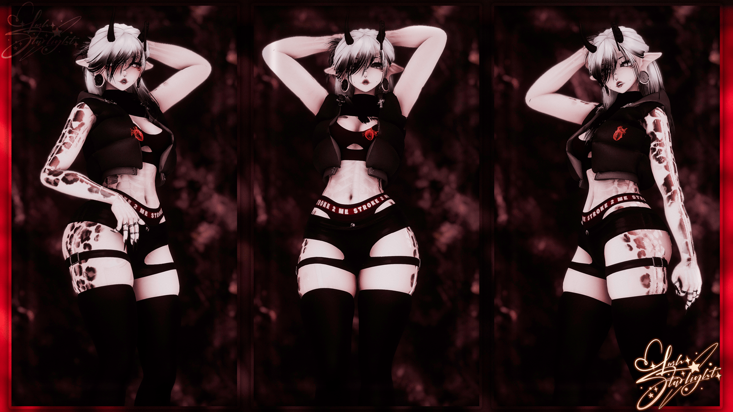 Skin + Face Texture :: YingYangVr - Vrbase Texture Set , LPB - Soft Makeup | Extra Head Tex :: Sakuu__ | Hair Texture :: Ciciea, NakuVr, Saikura | Matcaps :: Chemical Haven, Anthony Guiziou, Jvliette | Nipples :: Jvliette - Nipple Texture | Eyes :: @sanctity. - Levi | Tattoos :: Vendi - Primal Egirl