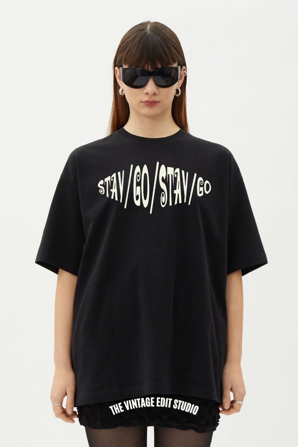 Stay / Go / Stay / Go is a simple four-word spiral that says everything about indecision and emotional chaos.