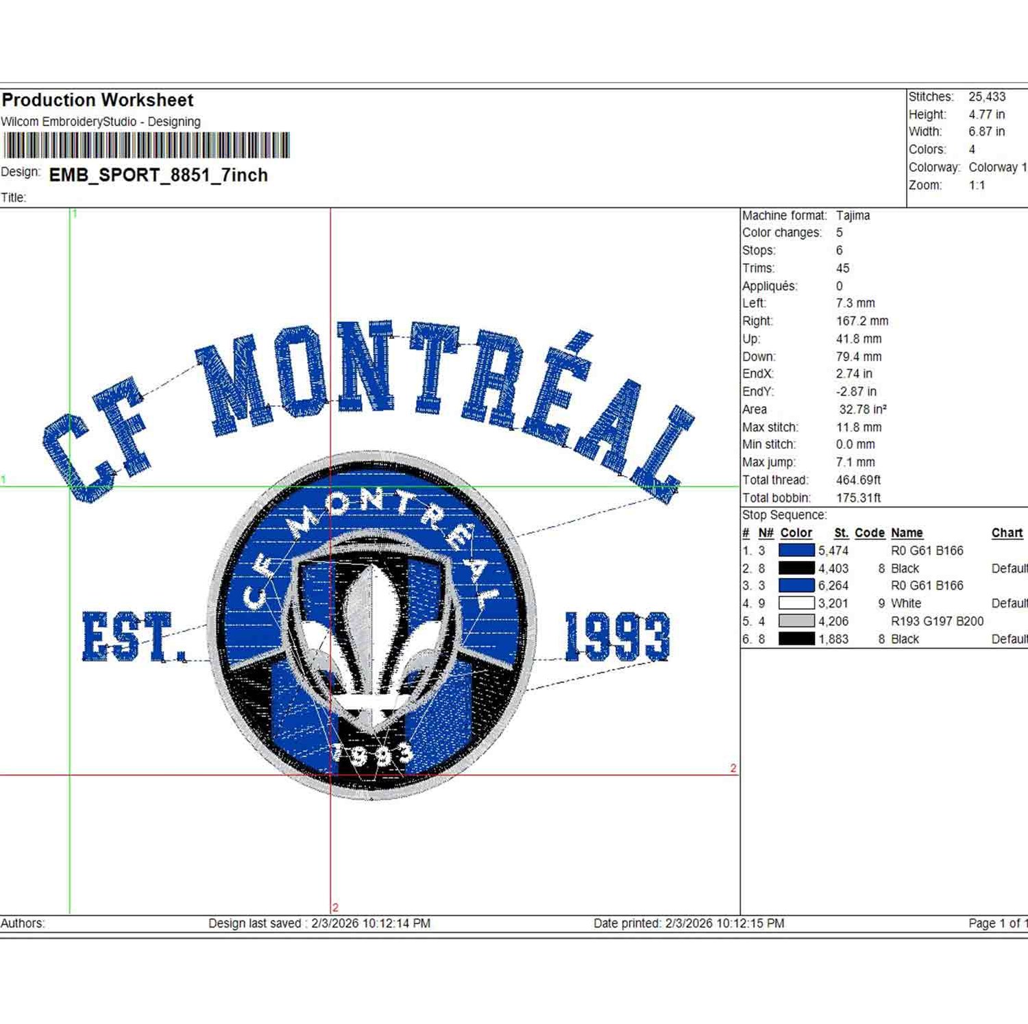 MLS CF Montréal Est 1993 Logo Embroidery Designs, CF Montréal Embroidery Files, MLS CF Montréal Soccer Team Logo Embroidery, Major League Soccer Machine Embroidery Design, Digital Download
