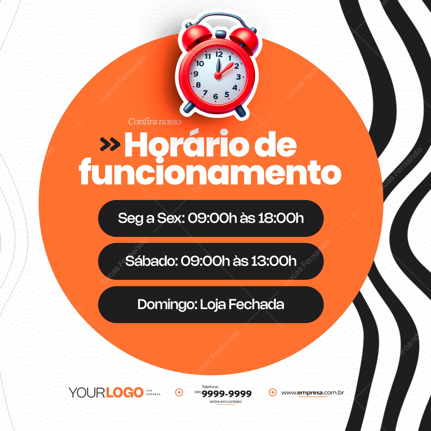 O horário de funcionamento da empresa é das 9h às 18h, de segunda a sexta-feira.