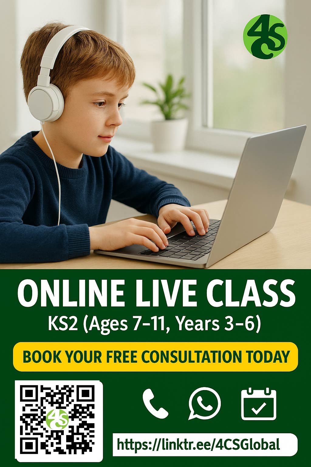 At 4CS Global Academy, our KS2 tuition supports children in Years 3–6 with the skills, confidence, and knowledge they need to thrive. We provide structured, engaging lessons that strengthen core subjects while nurturing curiosity, independence, and a love of learning.