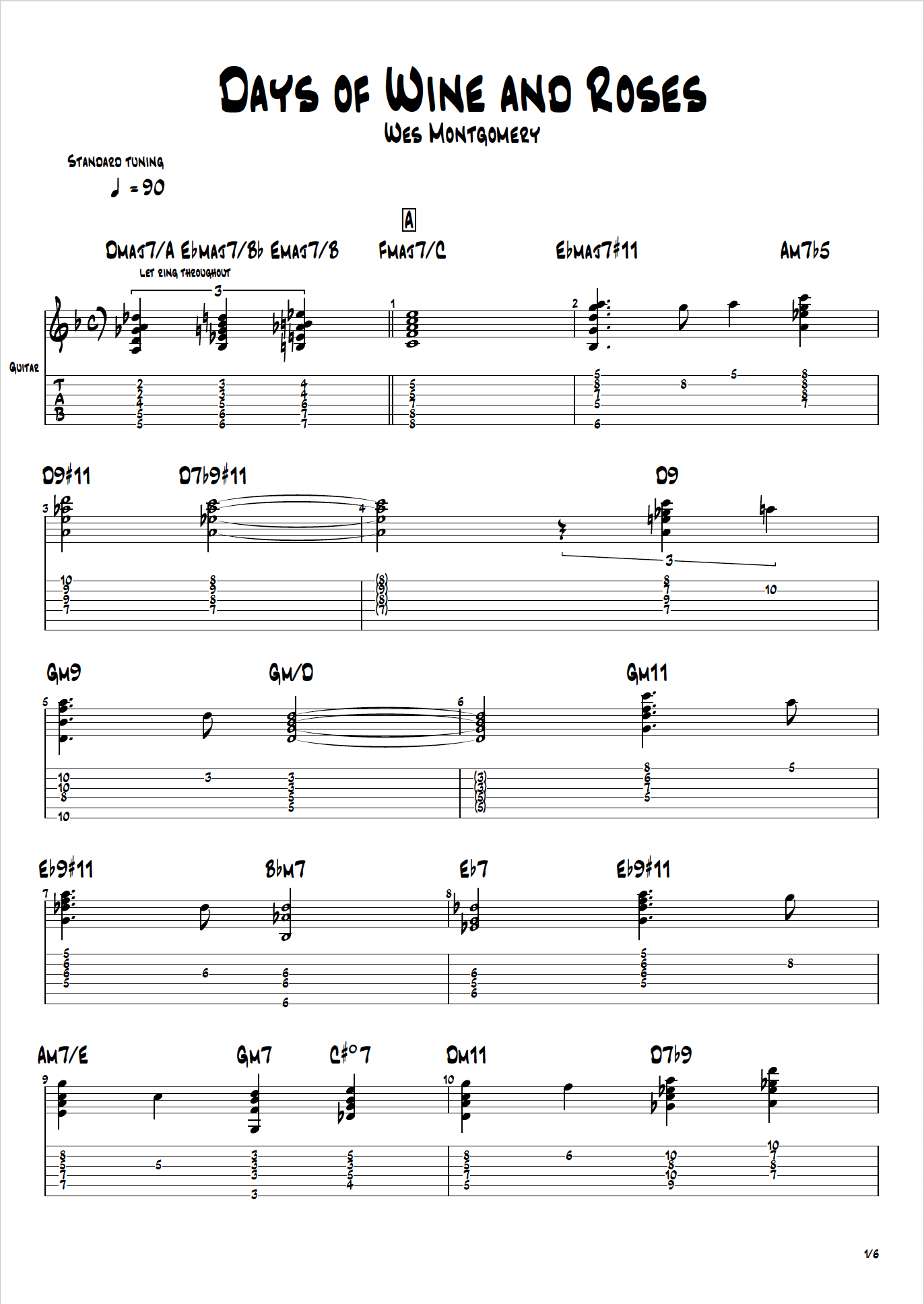 Wes Montgomery - Days of Wine and Roses PDF + Guitar Pro