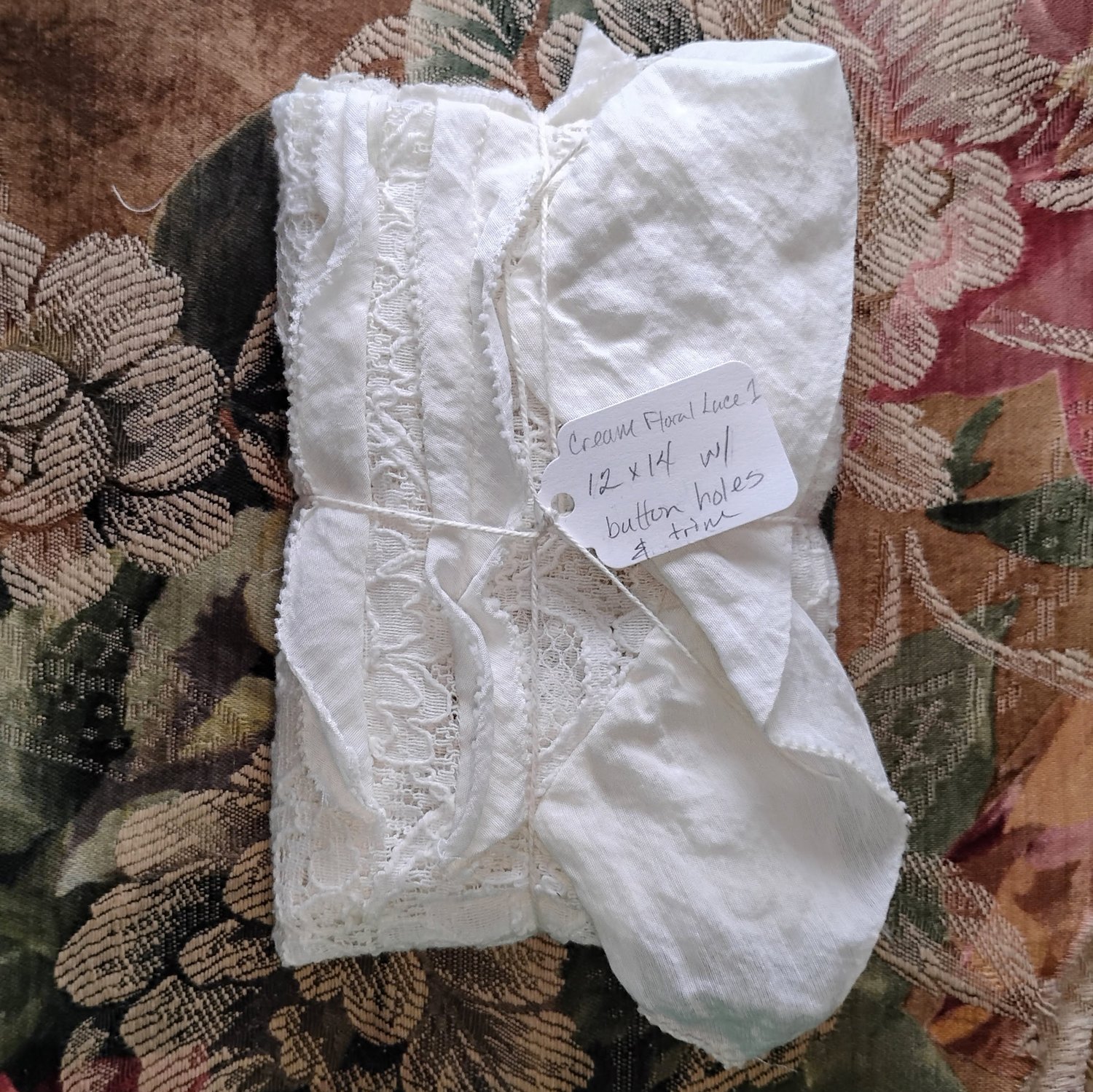 Cream Floral Lace 1 - 11 x 15 inches, with buttons & trim -1pc