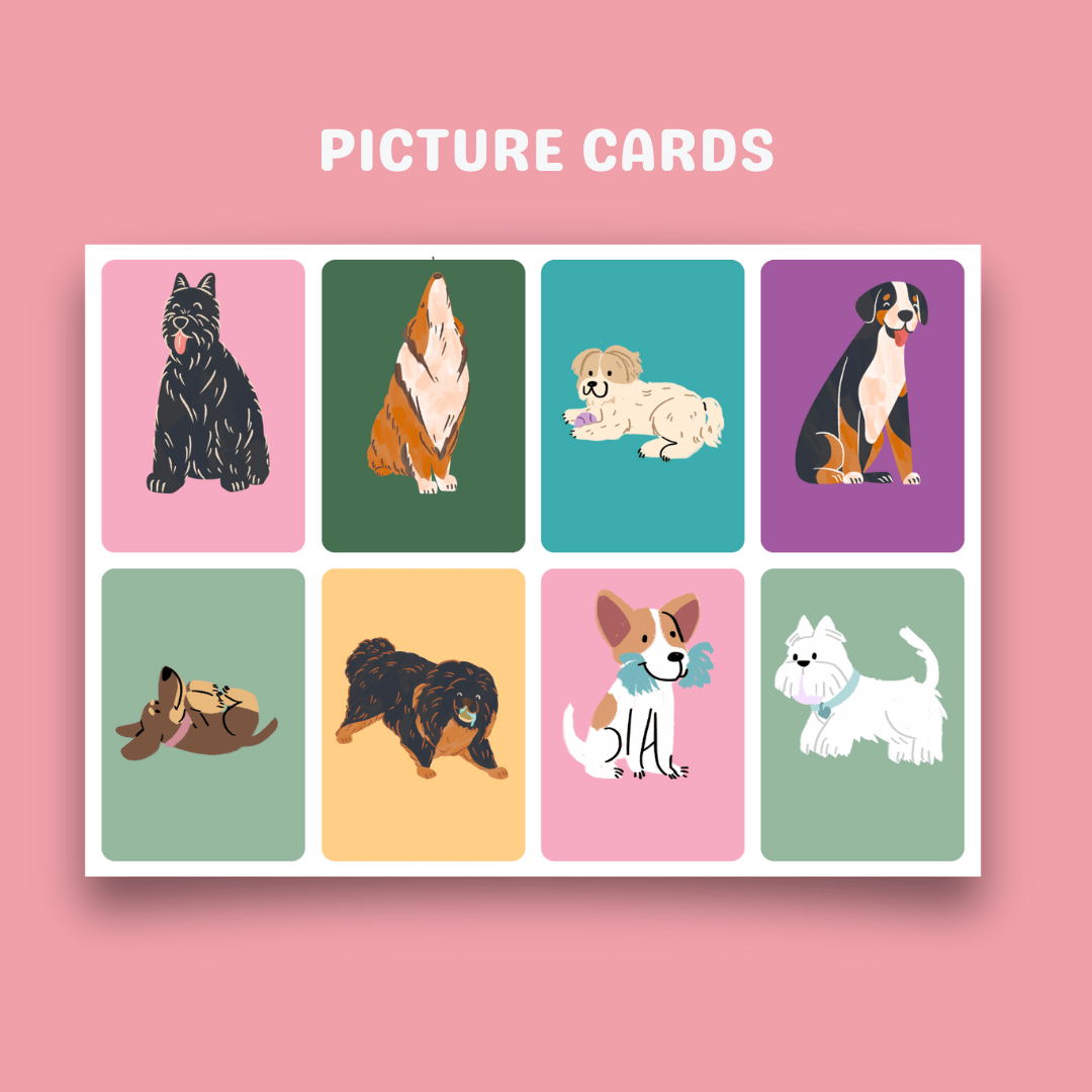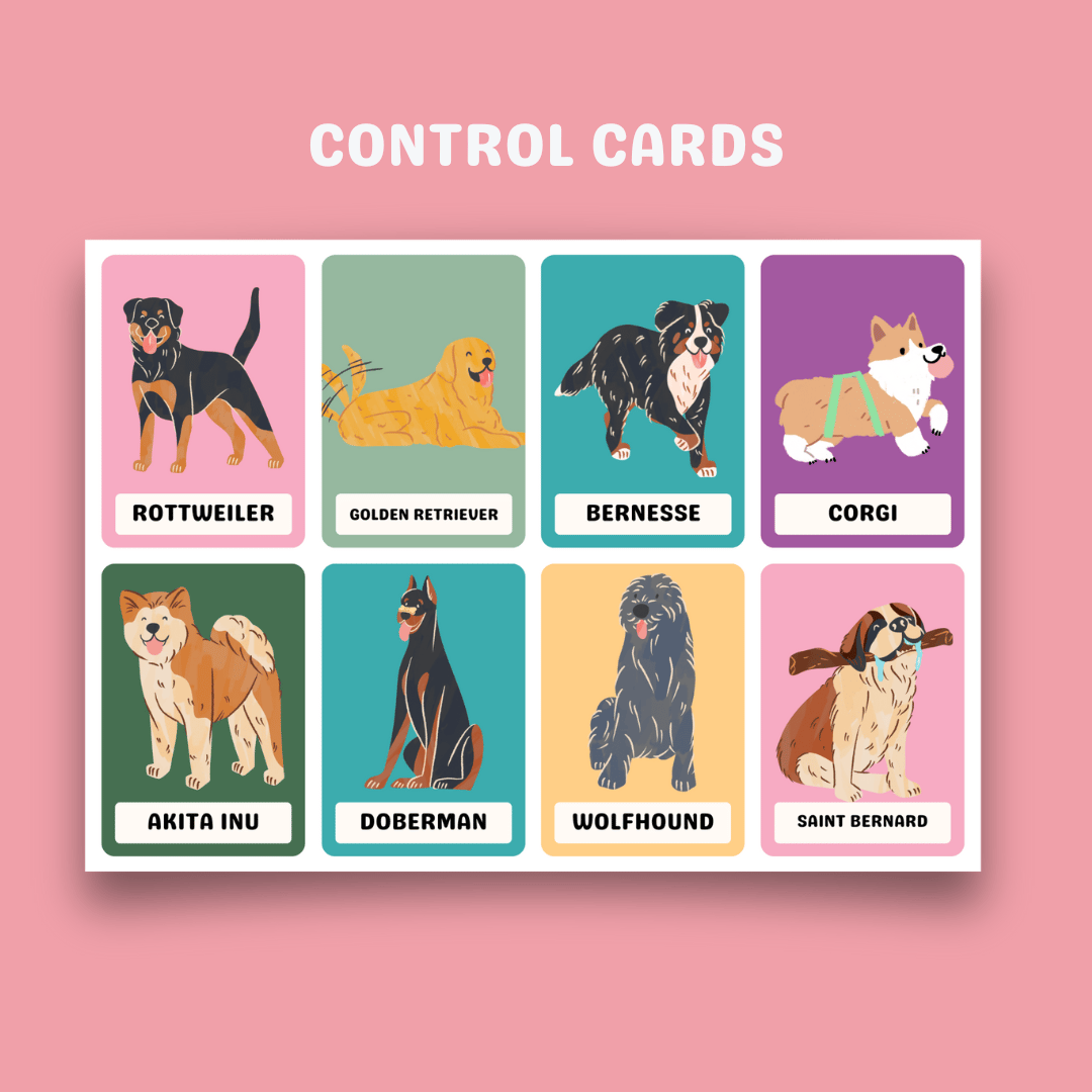 - Learning & Memorization: Use the full set of cards to study and learn the different dog breeds.