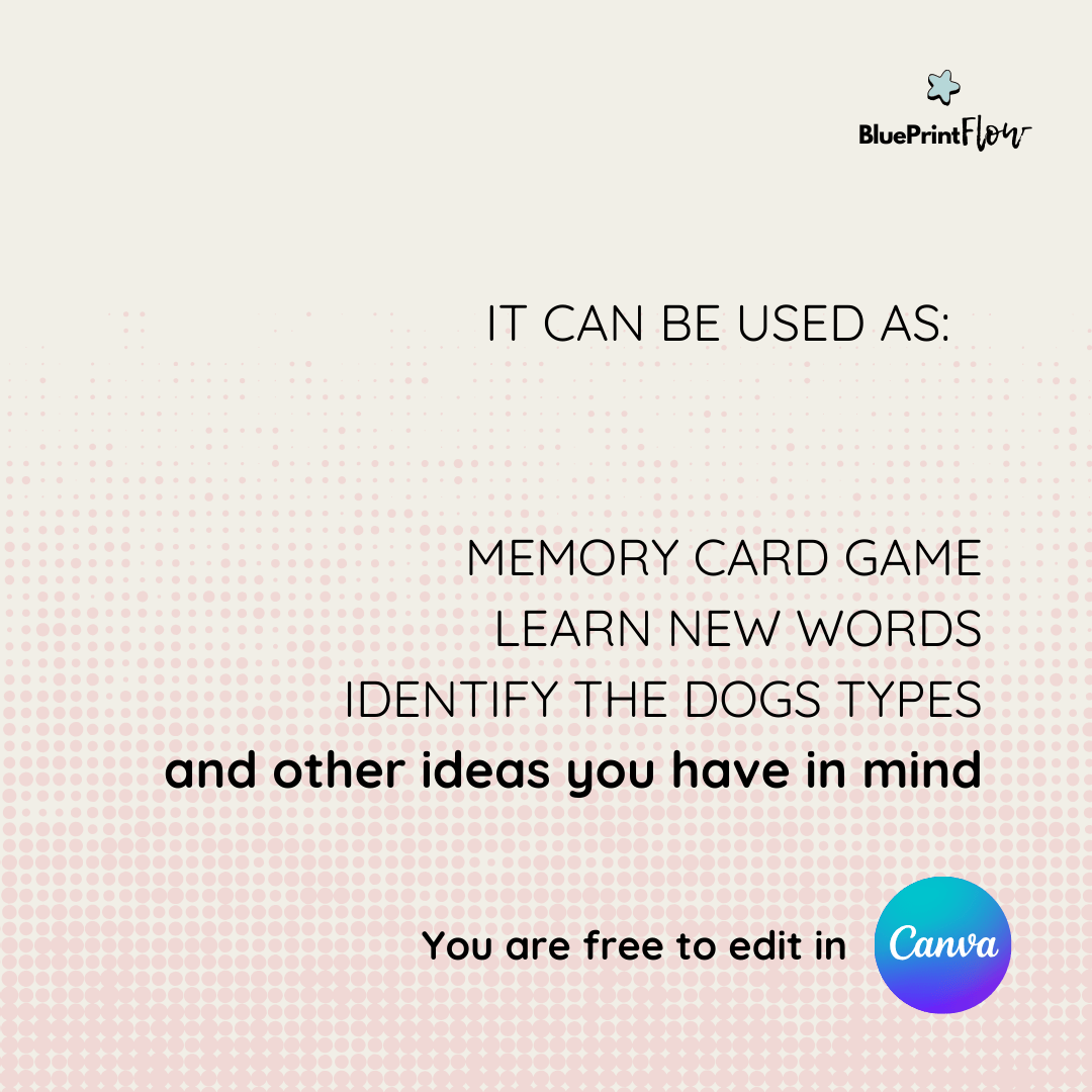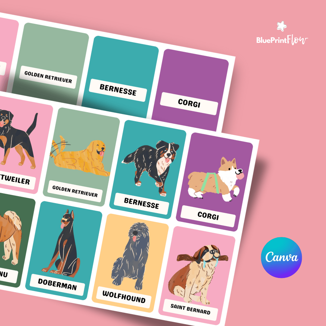Dog Breeds Flashcards – Printable PDF & Editable Canva Template